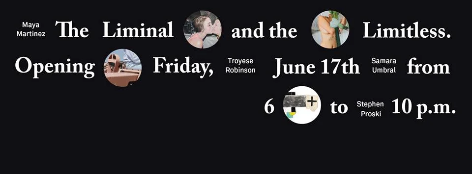 The Liminal and the Limitless features the work of Stephen Proski (KC), Samara Umbral (KC), Maya Martinez (BM) and Troyese Robinson (LA). The works of these four artists are steadfast in their shared flatness and sense of image making but vary in content, medium and intention. From this shared practice, the various directions of the work fluctuate within and without periods of liminality, being “of, relating to, or being an intermediate state, phase or condition”. The term, accredited by Victor Turner, discusses the in-flux qualities of social hierarchies and identities that produce outcomes for new institutions, definitions and fluid situations.